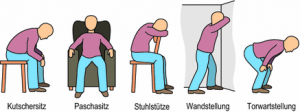 Bei der Stuhlstütze setzen Sie sich verkehrt herum auf einen Stuhl und legen die Arme auf der Stuhllehne ab.